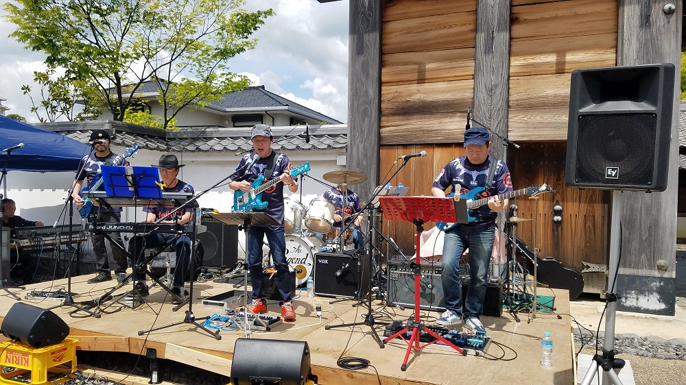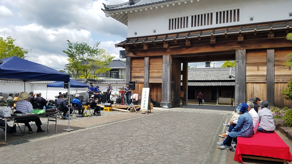 市の文化財に指定されている大手門の前に特設ステージを設置し、県内のフォーク・カントリーソング愛好家による生演奏🎷ステージです♪