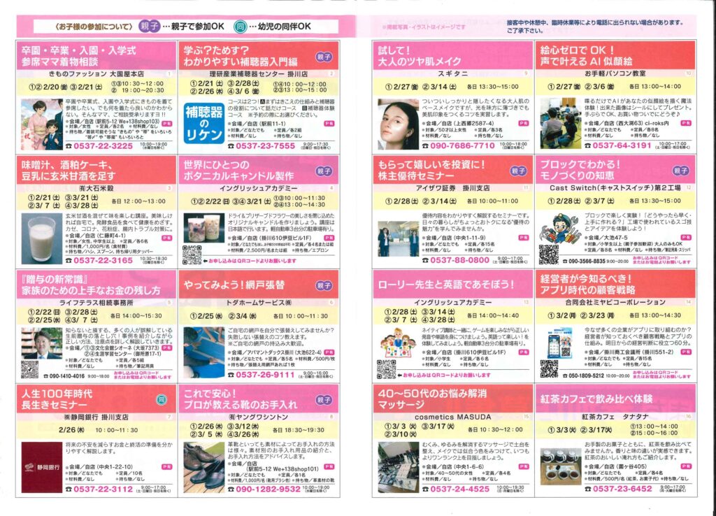 2/12(木)本日の朝刊折込でご覧になった方もいらっしゃると思いますが、個店や企業が様々なセミナー✏️や教室🗒️を開催しています🎵