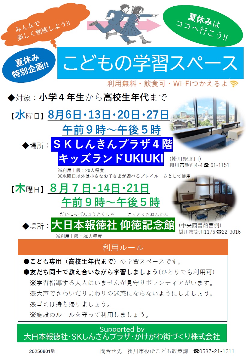 この夏、SKしんきんプラザ4階に、こども専用の学習(自習)📙スペースを無料開放します。友だち同士で教え合いながら楽しく学習✏️しましょう♪(ひとりでも利用可) 【夏休み特別企画 […]