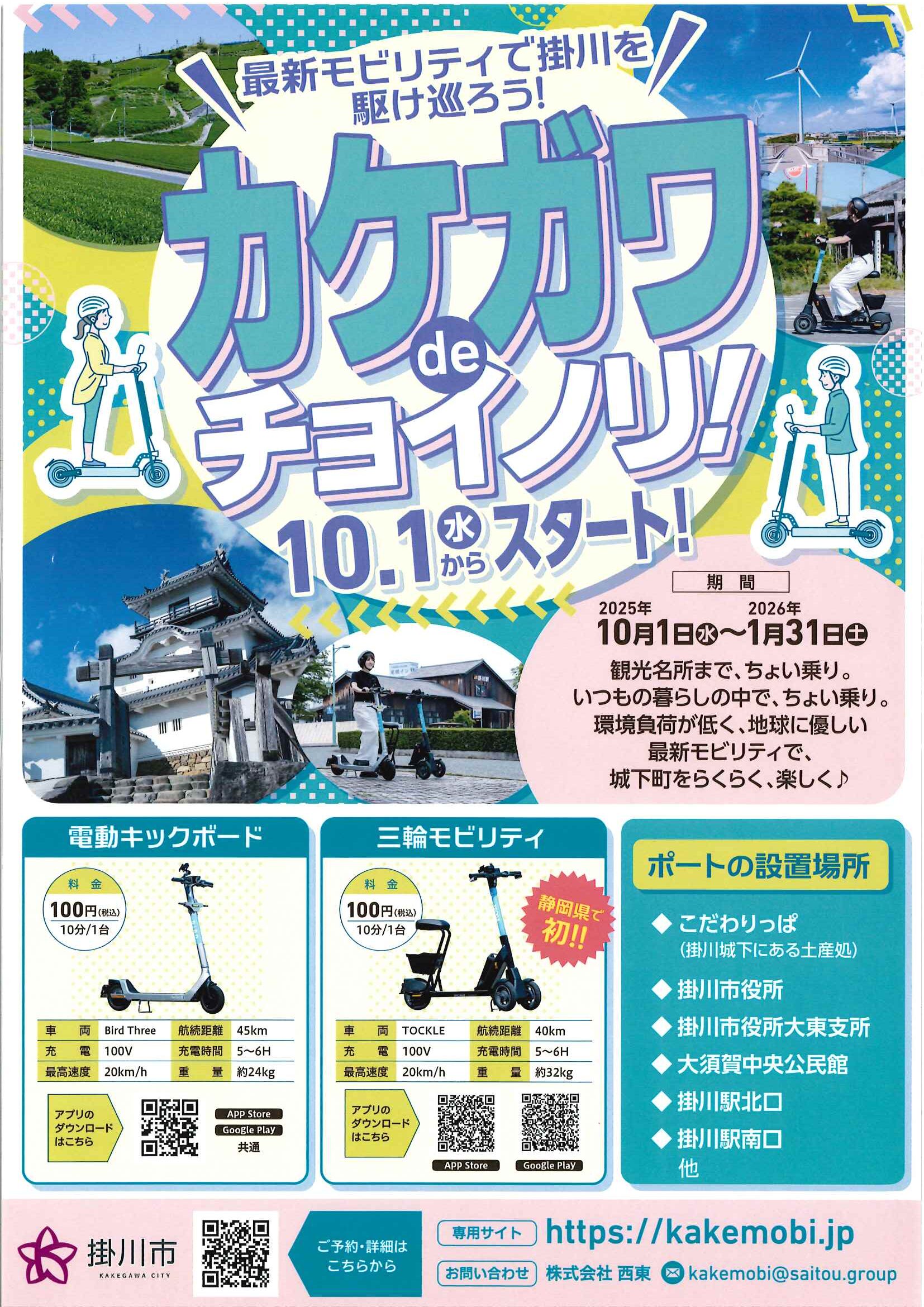 10月1日(水)から、掛川市内の主要場所に最新モビリティが設置され、観光名所🏯やお出掛け🛍️が便利になります🎵 いつもの暮らしの中で、ちょい乗り。環境負担が低 […]