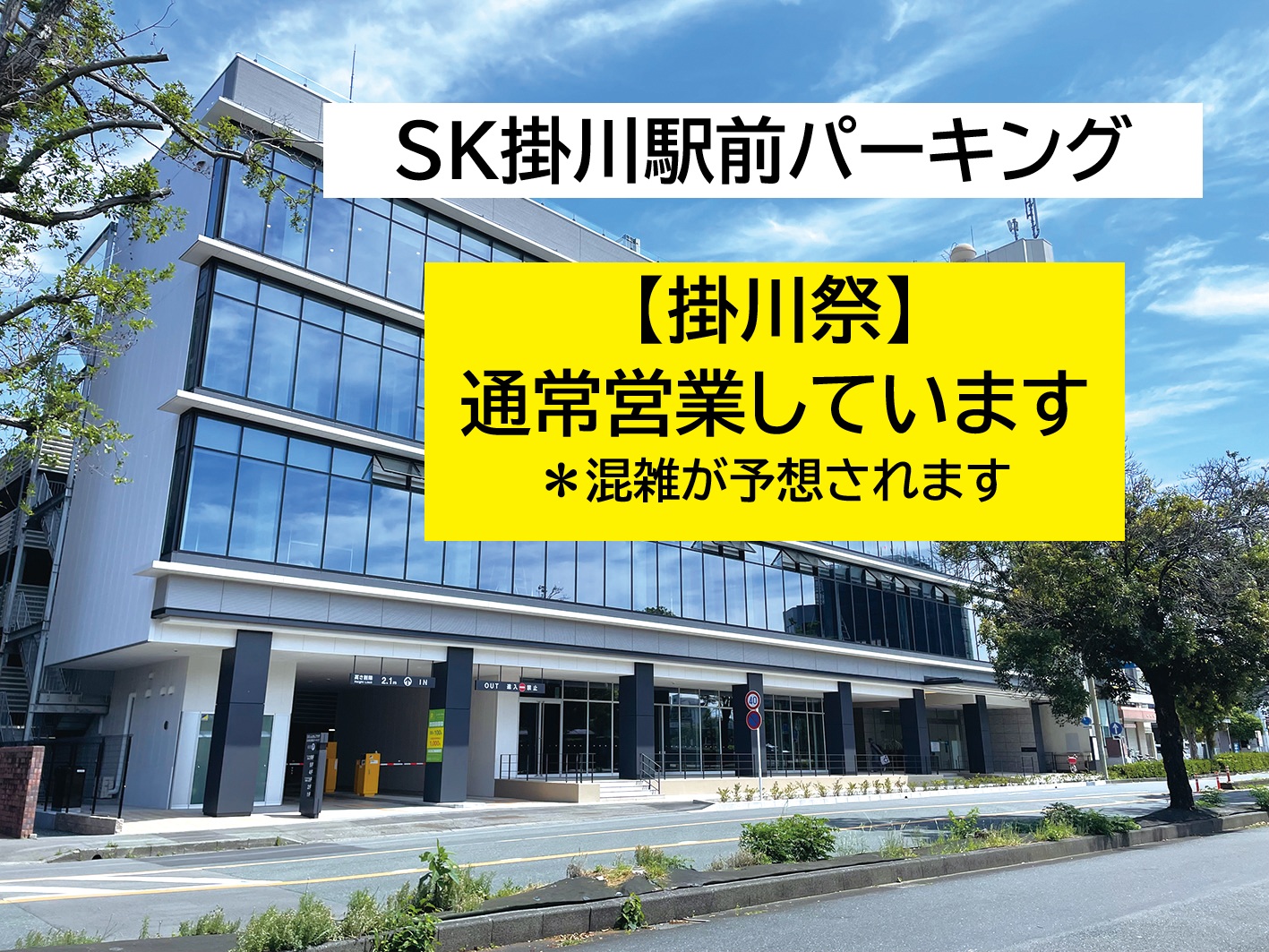 本日(9/7日)、SK掛川駅前パーキング出入口では、夕方まで路上塗装塗り替え作業を実施していますが、通常通り入・出庫が可能です。誘導員が誘導いたしますので、安心してご利用ください。 13:00時点で作業は終了いたしました […]